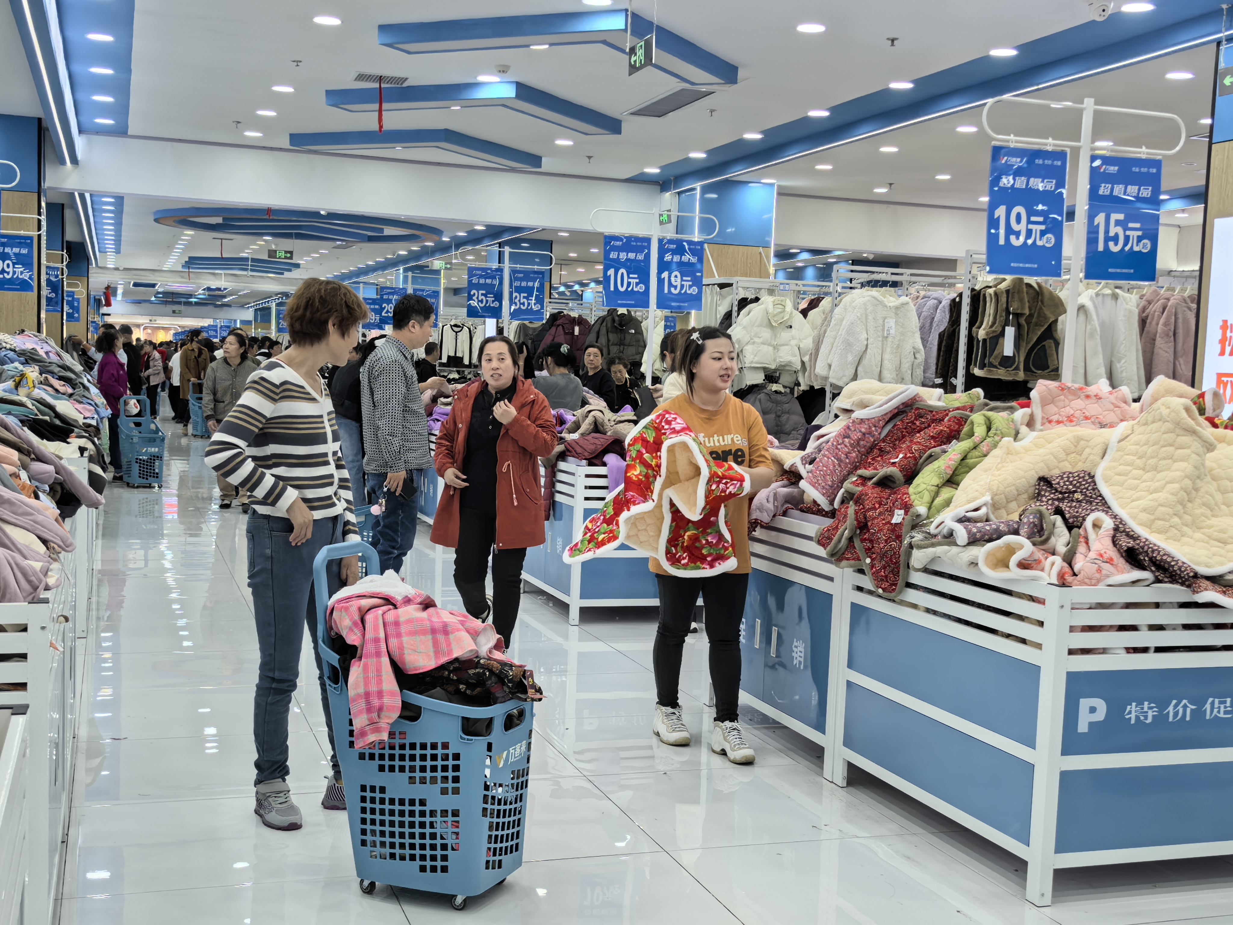近日,万客来服装超市北京二店在房山区开业,客流量连日爆棚。有消费者认为,服装超市的“人间烟火气”正是其独特魅力所在。