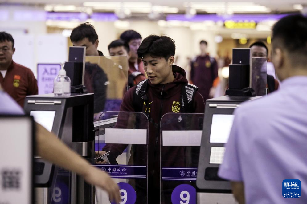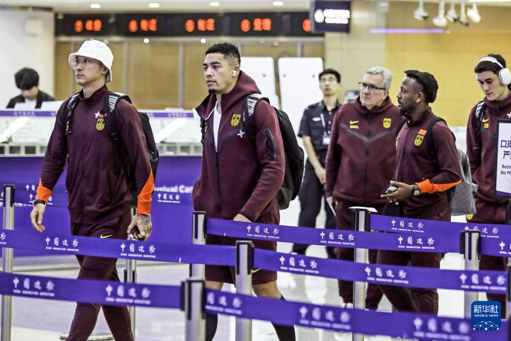 10月12日,中国国家男子足球队成员抵达机场。