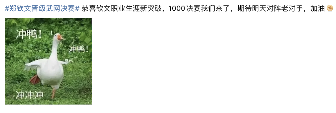 一起为郑钦文加油!
