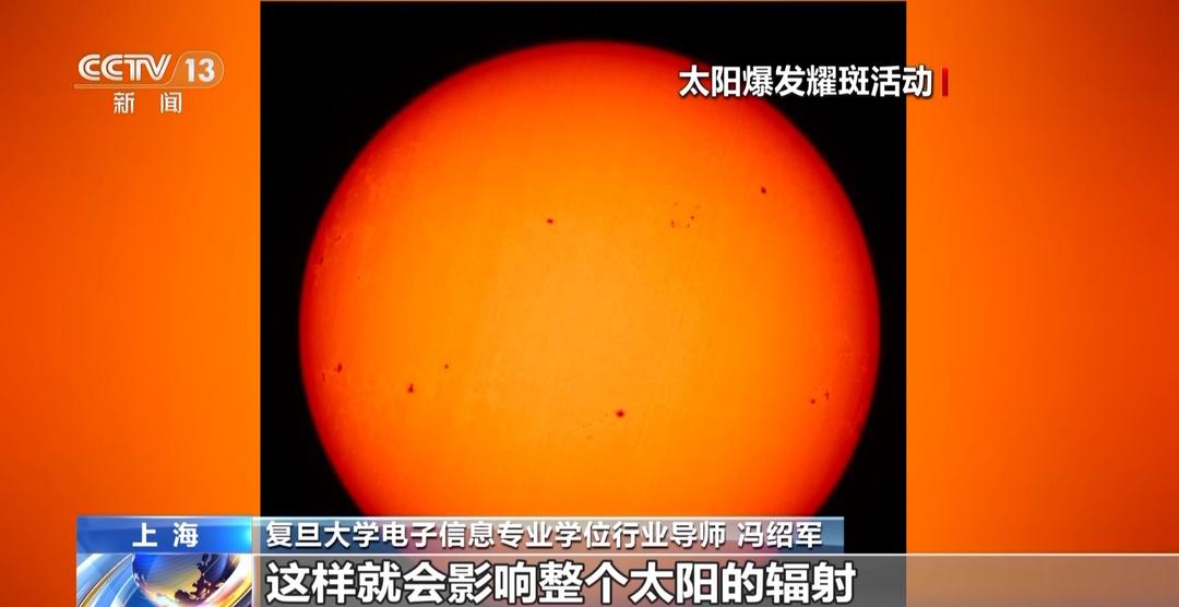 复旦大学电子信息专业学位行业导师 冯绍军:太阳的活动本身非常复杂,从观测的角度来看,我们有时候会发现上面有好多小黑点。我们叫太阳黑子,有时候它会出现局部区域或者边缘区域非常亮,我们称之耀斑。耀斑出现的时候,它会释放出很大的能量,这样就会影响整个太阳的辐射,对地磁场可能产生影响,可能还会引起地磁暴。