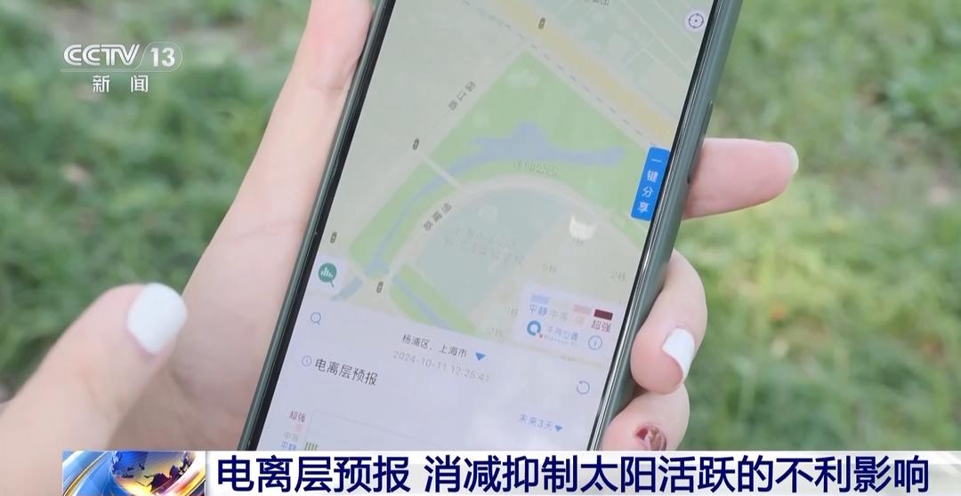 总台记者 窦筠韵:现在我们通过手机登录这样的一个电离层预报App,就能够实时看到我所在的这个区域目前的电离层活跃程度。那我们可以看到目前我们所在的区域在未来三小时的电离层活跃都处于一个中等的状态,除了查询所在的区域以外,还可以查询全国其他地方的情况。