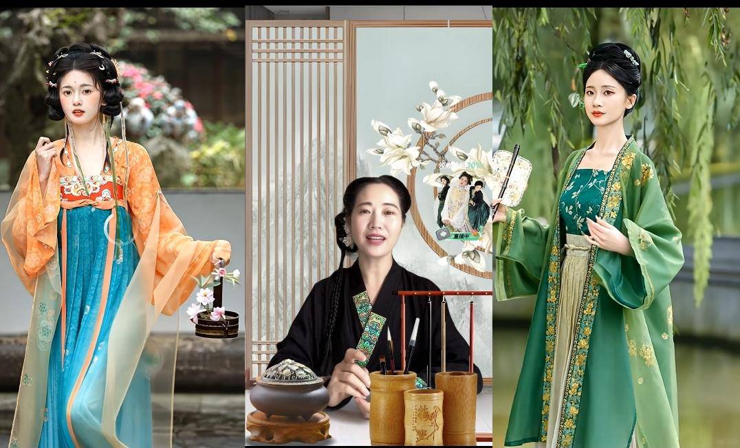 图:绿珠AI数字人分身及言犀视频大模型生成的汉服展示