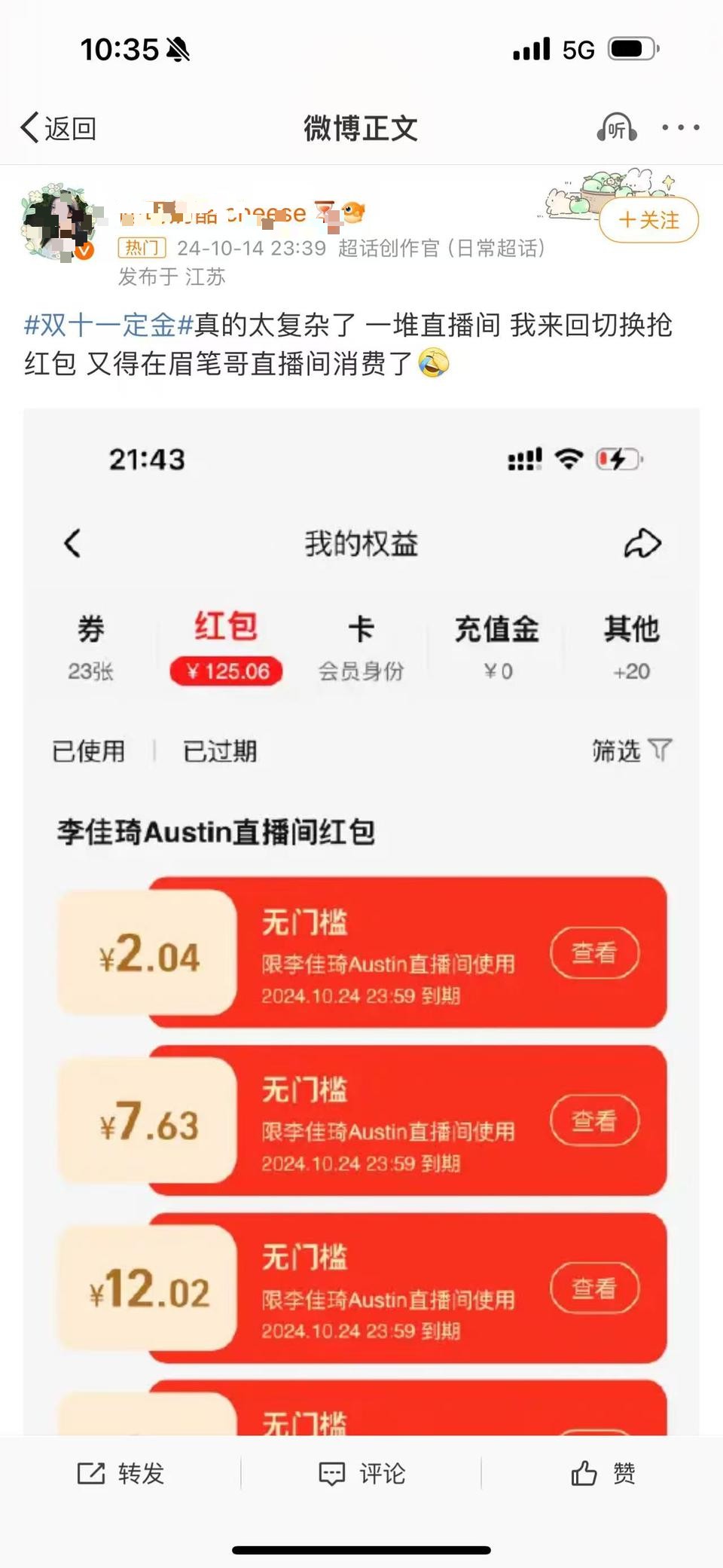 另据主播李佳琦微博12日消息,在14-15日,李佳琦直播间将发放5亿红包,可用于支付预售尾款及购买现货商品。