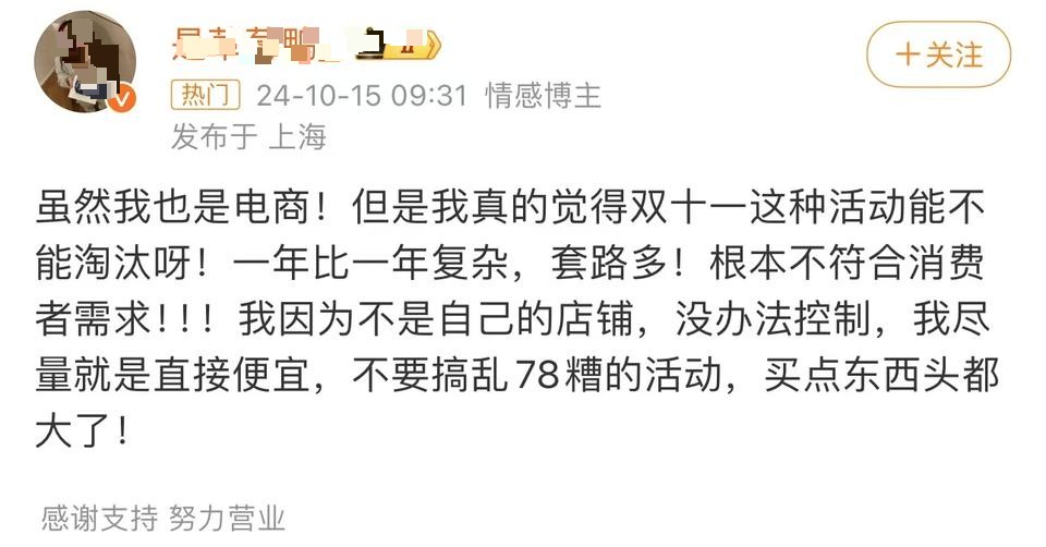 还有人吐槽,“双11”机制过于复杂,套路太多。