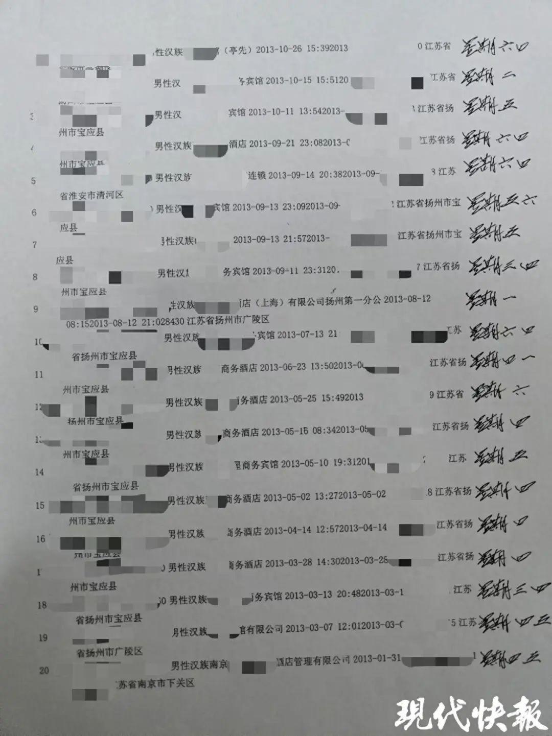 黄先生是扬州宝应人,与妻子胡某结婚多年,黄先生长年在外地打工,妻子留在家中照顾孩子。“这件事情还是其他人告诉我的。”黄先生告诉记者,2014年的一天,有人将徐某某的几十次开房记录打印出来,塞进了他的家门。黄先生当时不在家,是他父亲发现的。自此,黄先生开始怀疑妻子与徐某某存在不正当关系。