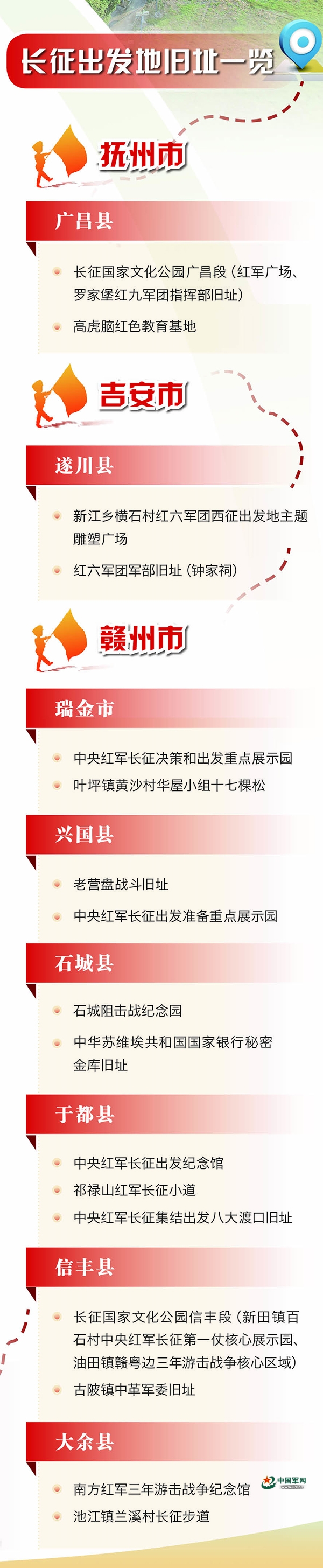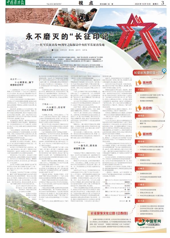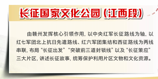 从长征国家文化公园、长征步道、突破封锁线战斗旧址,到红军村庄、红色守护人、红军后代合唱团……如今,在中央红军长征出发地赣南地区,处处可见的“长征印记”,以不同形式讲述着可歌可泣、震古烁今的长征故事,激励后来人弘扬伟大长征精神,走好新时代长征路。