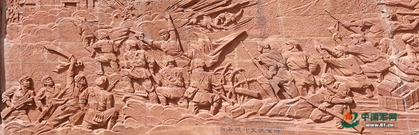 位于江西省信丰县新田镇的百石战斗浮雕。谢群群摄