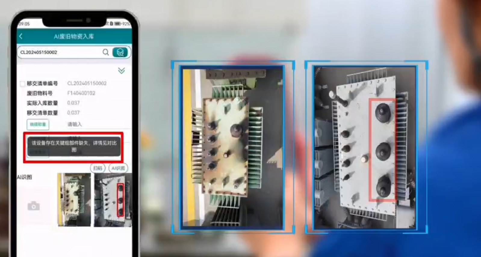 2024年5月,国网山东电力投资建设的闲废物资智慧管理园区正式投入运行,该园区应用数字化技术手段建立闲废物资智慧管理体系,实现闲废物资的回收、核验、处置、交接网络数字化管控。电气设备存在种类繁多、构成部件复杂的特点,如何确保回收设备完整一直是个难题。国网山东电力自2023年开始,利用AI视觉分析比对技术,在“e物资”APP上试点建设关键废旧设备AI模型库,通过实时比对物资实物图片和标准模型,自动核验设备部件完备程度,就缺失部件发出实时告警,确保回收部件完整。针对电缆、导线等材料类物资,国网山东电力创新采用“物联称重+视频头盔”技术实现智能计数,数据实时传送至仓储管理系统(WMS)并完成数据复核,确保物资足额回收。