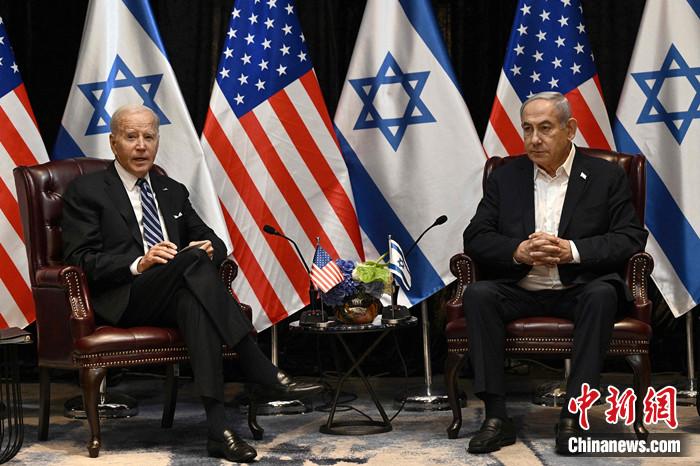 当地时间2023年10月18日,以色列特拉维夫,以色列总理内塔尼亚胡会见美国总统拜登。