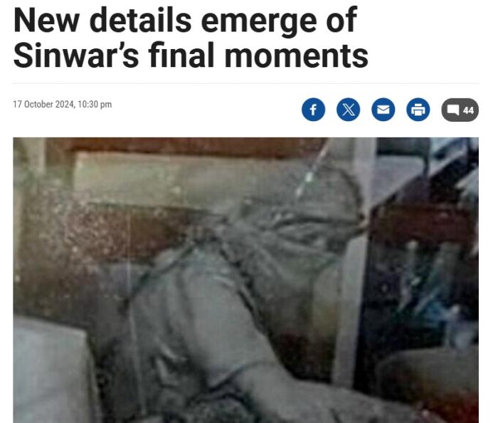以媒公布辛瓦尔“最后时刻”:向无人机投掷棍子