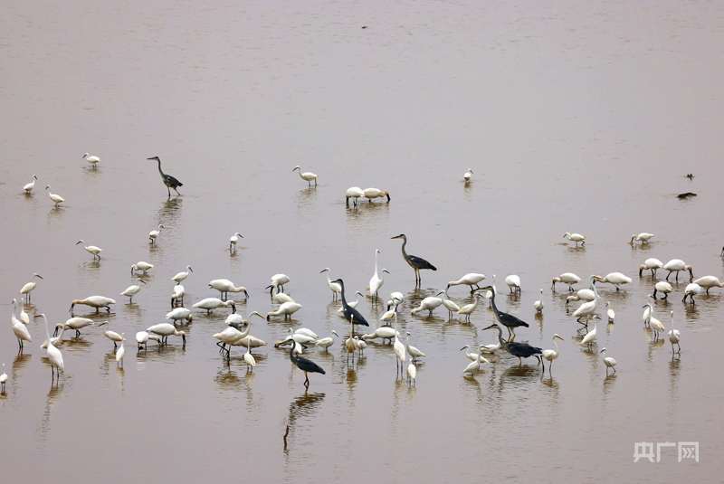 抵达鄱阳湖湖口水域的候鸟(央广网发 徐会刚 摄)
