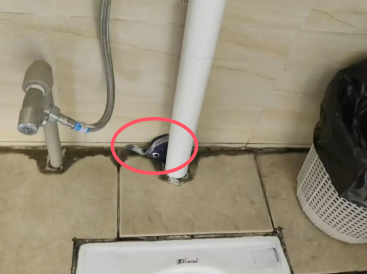网帖中的图片显示,厕所水管后隐藏着一个用纸巾袋包裹的小型摄像设备,摄像头正对蹲坑。