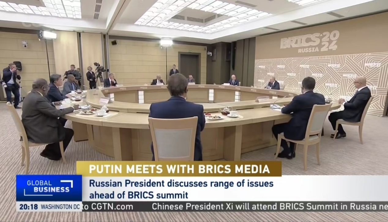 总台CGTN是参加此次普京与金砖国家主流媒体对话会的唯一中国媒体。