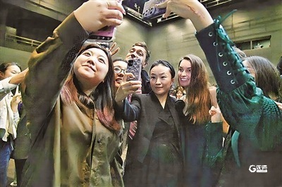 俄罗斯音乐剧《安娜·卡列尼娜》主创人员在见面会上和歌迷合影。