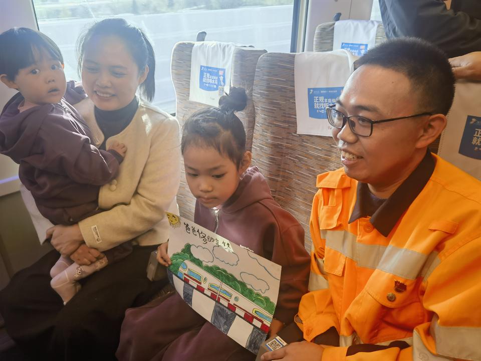 背依山海、大道始成。潍烟高铁的顺利开通,给王新振的介入工作画上了一个圆满的句号,此时此刻他又有了一个新目标,就是乘坐列车行驶在自己躬耕的高铁上,带着妻子和两个孩子去看海。“这是我画的,这是爸爸修的高铁,以后我也要像爸爸一样。”王新振的孩子说。
