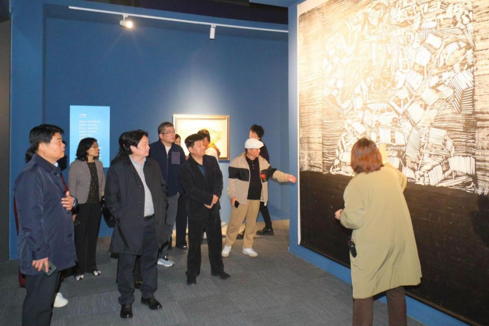 当日,中央美术学院院长林茂和中央美术学院美术馆工作团队、山东省教育厅、山东省美术家协会、济南市教育局、济南市历下区政府、济南 CBD 中央商务区管委会和济南城投集团等单位主要负责同志齐聚济南中央商务区文化中心展览馆出席活动,拉开“中央美术学院美术馆藏版画专题”巡展济南站帷幕。