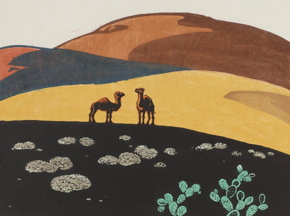古元《丘陵》 37.5×53cm 木版套色 1988年 中央美术学院美术馆藏