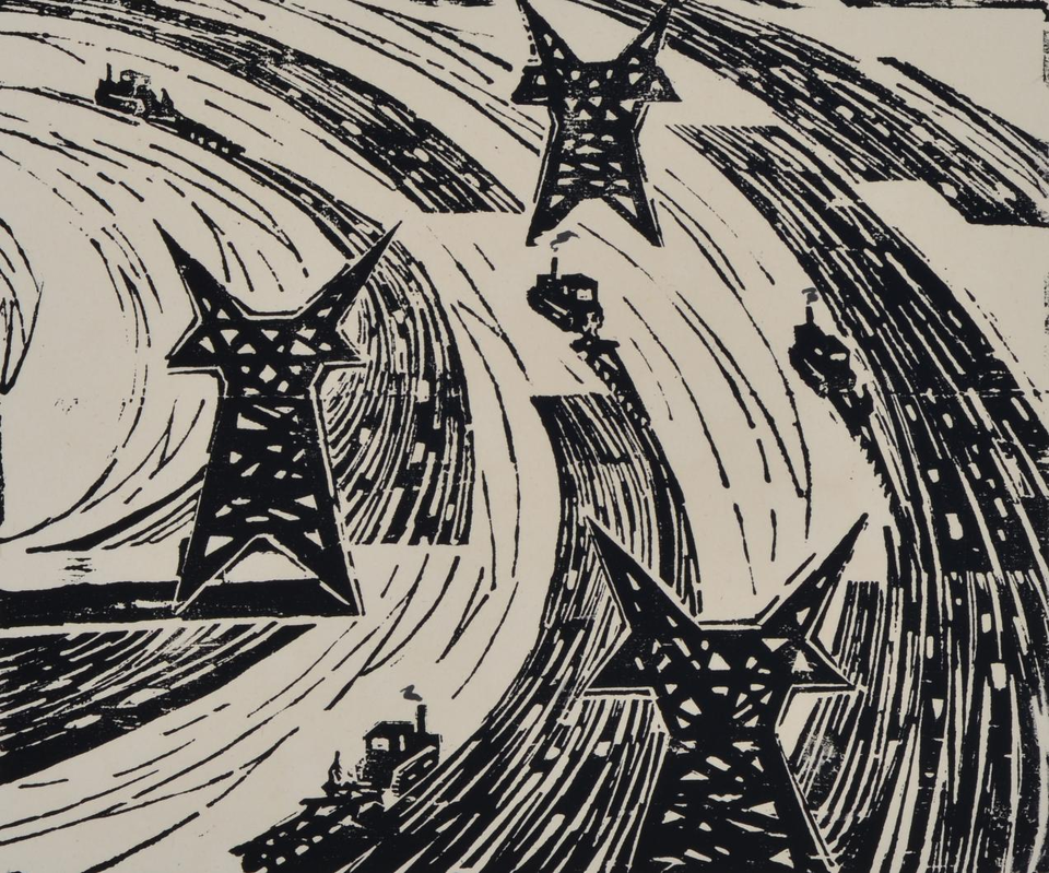 彦涵《耕耘在祖国的大地上》 23×28cm 木版单色 1978年 中央美术学院美术馆藏