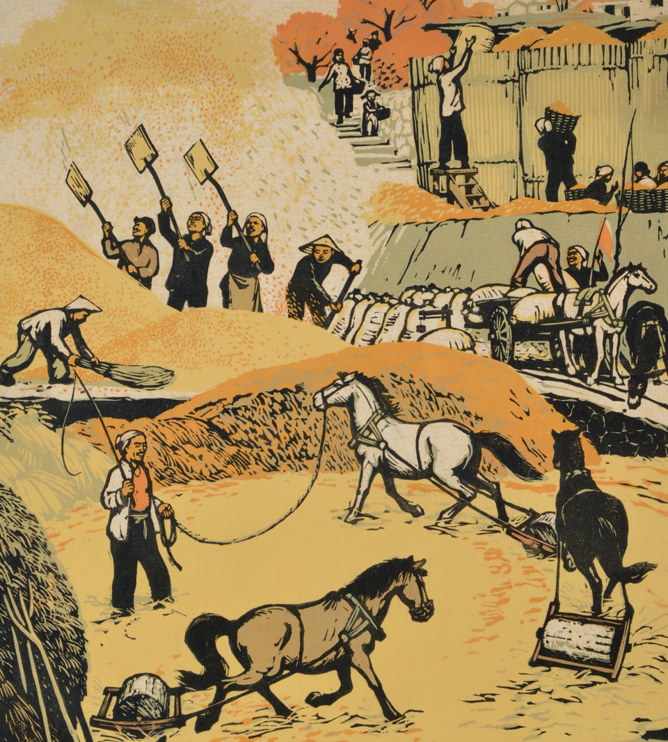 宋源文《打场》 44 ×38cm 木版套色 1961年 中央美术学院美术馆藏