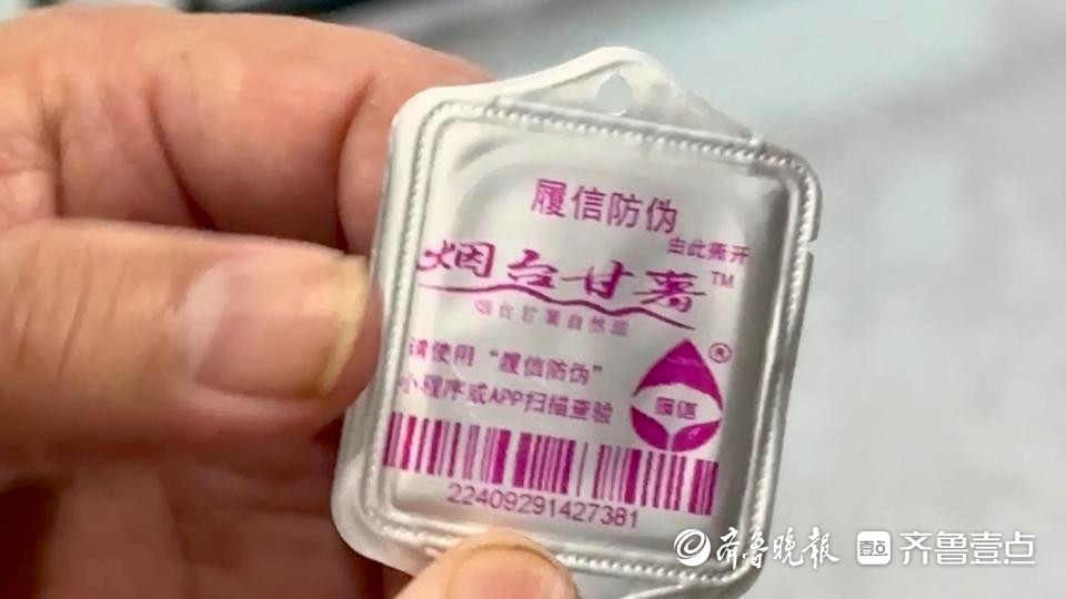 “目前,这款防伪标识是填补了国际空白的液体可变色防伪信息的溯源码,这个溯源码给烟台甘薯做真实性过程的担保。外包装上有‘烟台甘薯’和我们履信的商标,里边卡片的上半部分是无碳雕刻的OCR字母,下边蓝色的小点是液体的,打开后接触空气8小时会自动消失,不可复原。这上下两部分组成防伪信息的入口。通过微信上履信防伪小程序进行识别,可查看生产地址。”山东履信思源防伪技术有限公司董事长说。