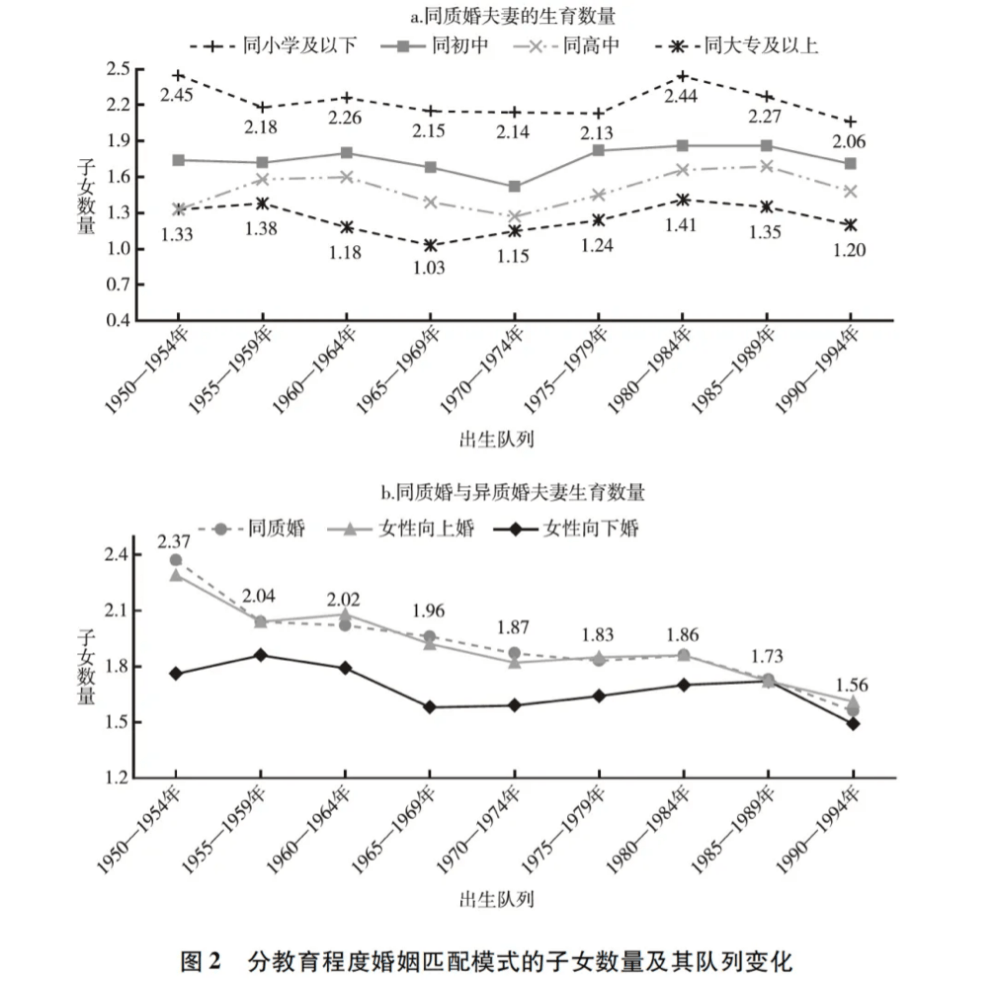 分教育程度婚姻匹配模式的子女数量及其队列变化