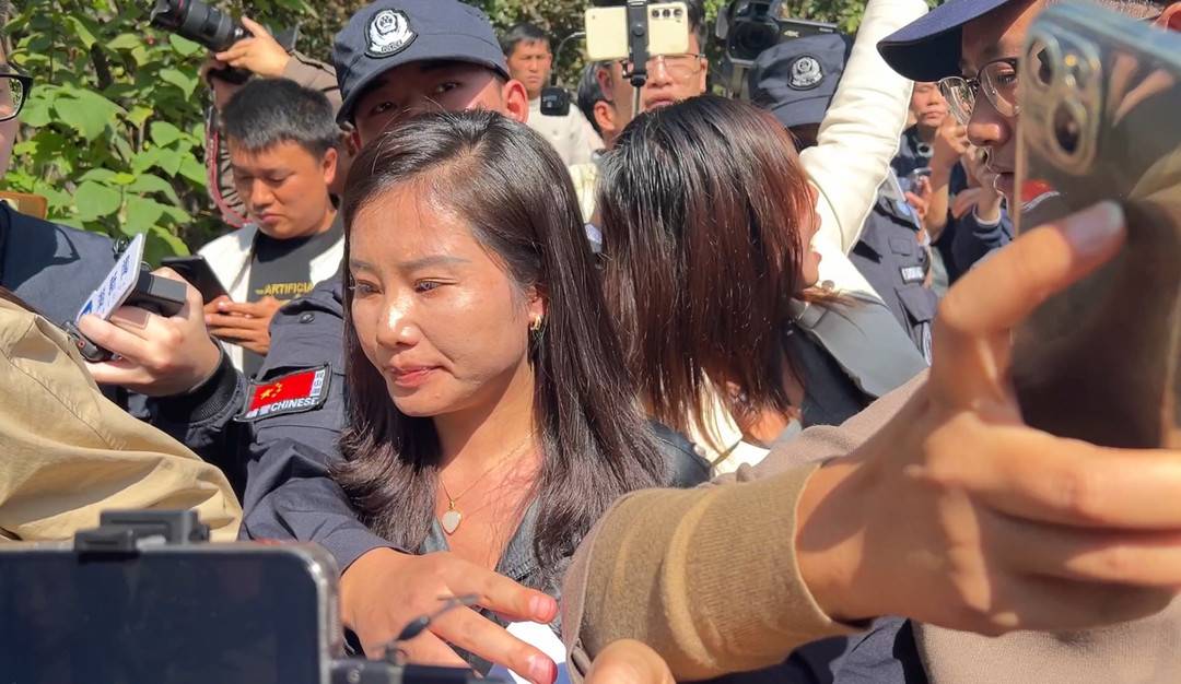 10月25日“余华英案”重审一审宣判后,被害人杨妞花走出法院