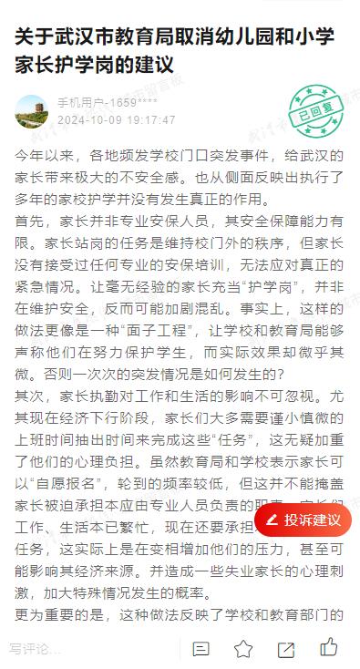 热闻|市民建议取消家长护学岗,一地教育局回应,网友吵翻