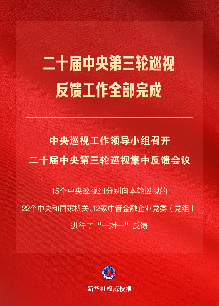 根据党中央部署,二十届中央第三轮巡视反馈工作近日全部完成。