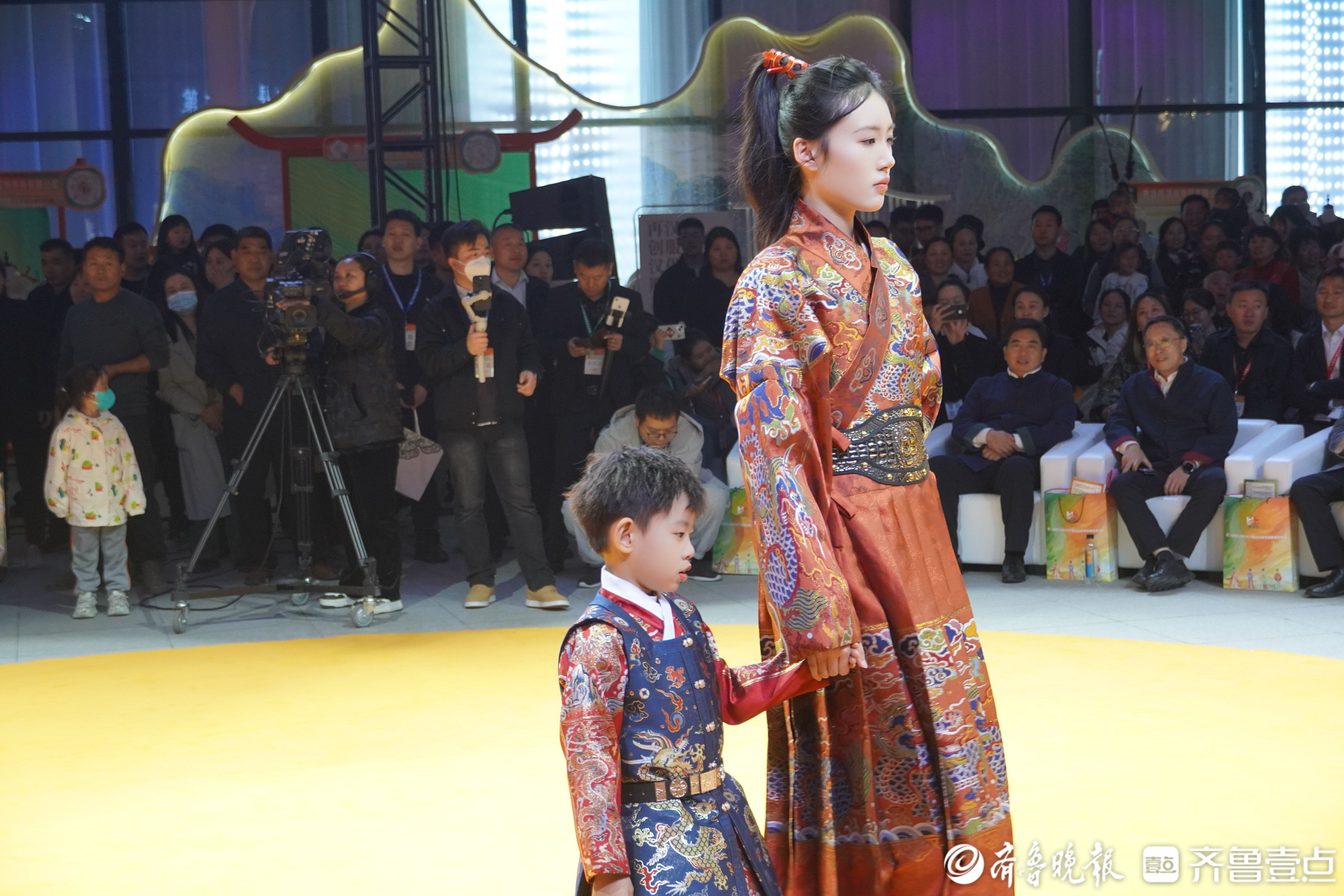 随后,与会领导嘉宾上台触动大屏,共同启动“第二届曹县汉服文化节2024秋冬款新品发布会”。启动仪式后,华裳溢彩、古韵新姿的朝代国风走秀活动精彩上演,引得在场观众的阵阵掌声。