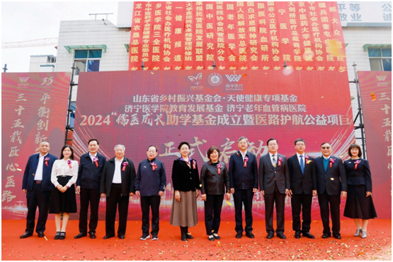 在庆典仪式上,济宁老年血管病医院与山东省乡村振兴基金会·天使健康专项基金、济宁医学院教育发展基金共同发起成立的“儒医成长”助学基金正式揭牌,并启动“医路护航”公益项目。该基金旨在为在济宁医学院就读的困难学子提供资助,将儒家文化与现代医学深度融合,推动健康与教育的有机结合。