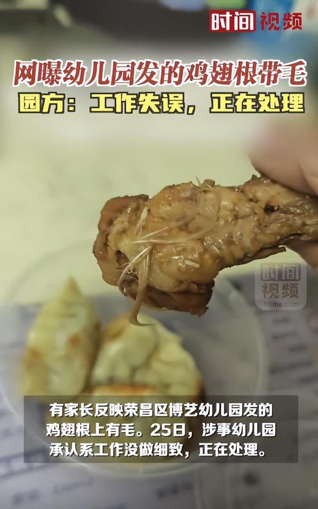 家长称重庆荣昌一幼儿园发放的鸡腿带有鸡毛,多部门联合调查