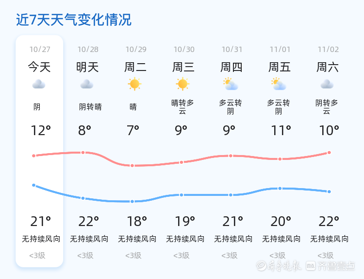 未来三天,枣庄的天气将以晴朗和多云天气为主。具体来说,10月29日,枣庄将全天晴朗,气温降至7℃至18℃;10月30日,天气转为晴转多云,气温略有回升,维持在9℃至19℃之间;10月31日,多云转阴,气温保持在9℃至21℃。市民在出行时,请根据天气变化合理安排行程,特别是早晚温差较大,需做好保暖措施。此外,近期空气湿度较大,市民应注意防潮防霉,保持室内通风。