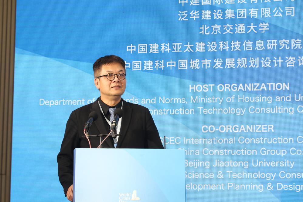 中建国际建设有限公司副总经理孙敬东分享了对国际工程行业发展趋势的思考,介绍了埃及新首都中央商务区、乌兹别克斯坦新塔什干等国际新城项目开发建设的案例,阐述了全产业链支撑新城新区综合开发建设的愿景。