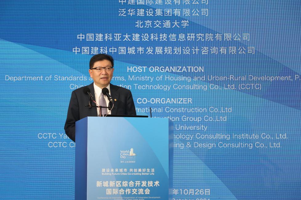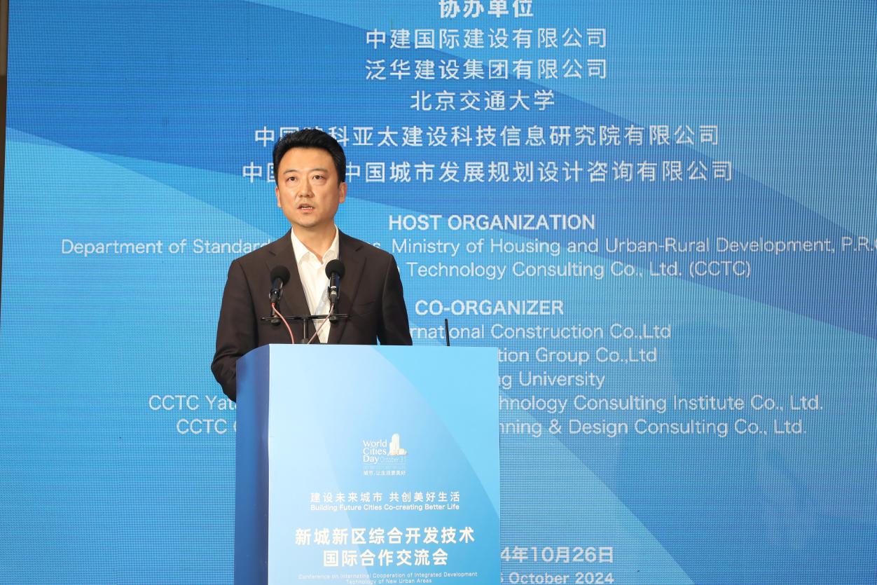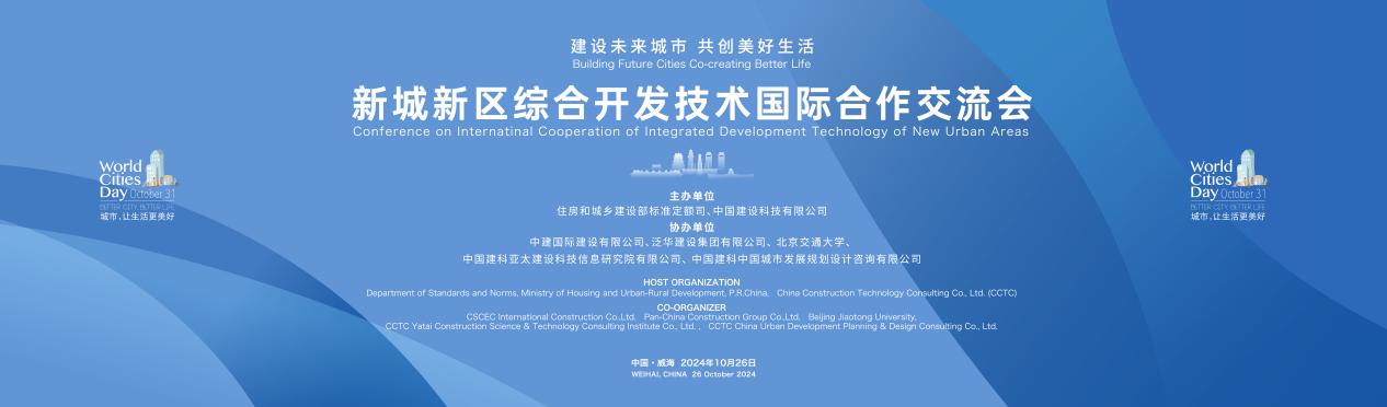 2024年10月26日下午,由住房城乡建设部标准定额司、中国建设科技有限公司主办的“新城新区综合开发技术国际合作交流会”,作为2024年世界城市日中国主场活动之一,在山东威海召开。2024年10月26日下午,在2024年世界城市日中国主场活动期间,由住房城乡建设部标准定额司、中国建设科技有限公司主办的“新城新区综合开发技术国际合作交流会”在山东威海召开。会议围绕“建设未来城市 共创美好生活”主题,推进了新城新区综合开发技术科创平台创建工作,就中外新城新区综合开发技术经验、案例与机遇等内容深入交流,拉开了住房城乡建设领域科技标准国际交流周的序幕。