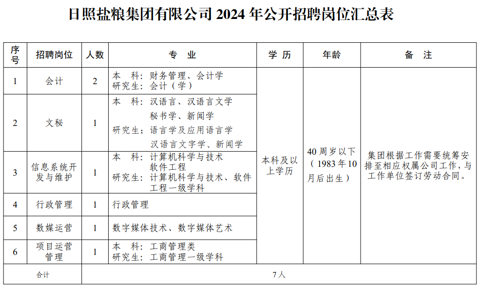 日照盐粮集团公开招聘7人,11月2日开始报名