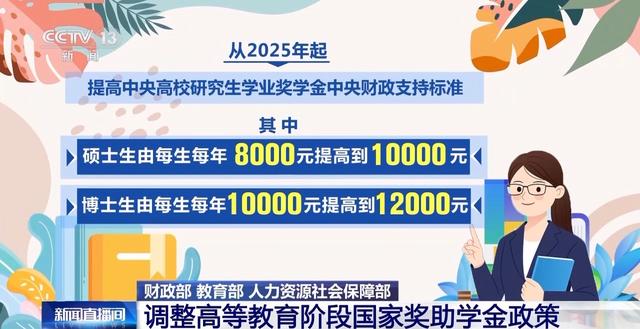 与此同时,提高研究生学业奖学金支持标准。从2025年起,提高中央高校研究生学业奖学金中央财政支持标准,其中: