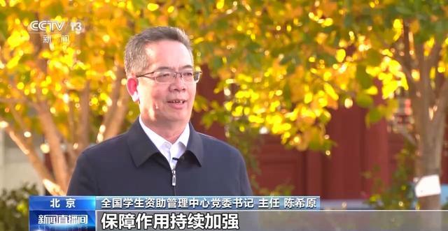 全国学生资助管理中心党委书记 主任 陈希原:通过这次政策调整,学生资助政策体系更加完善,保障作用持续加强,激励效果更加彰显,激励广大学子勤奋学习、潜心科研、全面发展,为促进拔尖创新人才和急需紧缺人才的培养发挥积极作用,为推进教育强国建设和民族复兴伟业提供有力支撑。