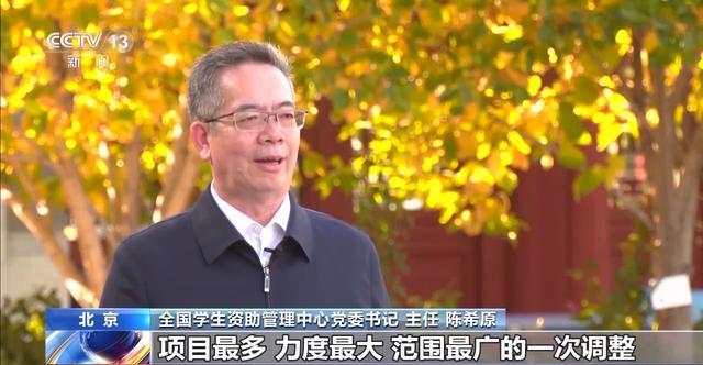 全国学生资助管理中心党委书记 主任 陈希原:这次政策调整统筹兼顾了助困和奖优、提标和扩面、高等教育阶段和高中阶段。这是2007年资助政策体系建立以来,项目最多、力度最大、范围最广的一次调整。