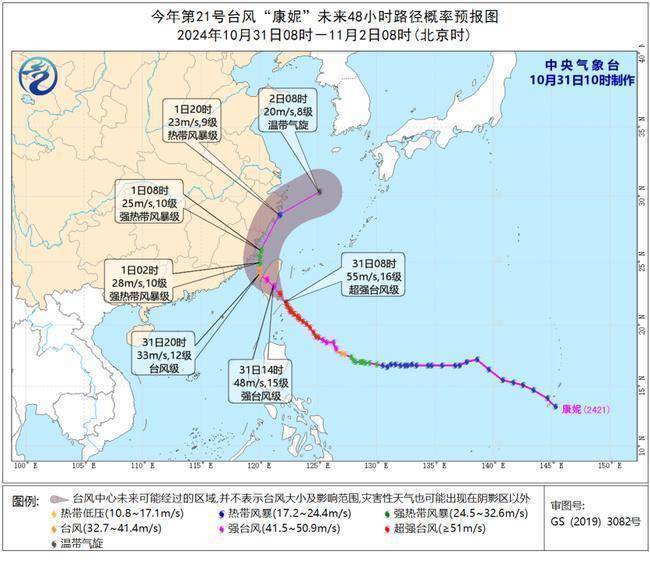 中央气象台10月31日10时继续发布台风橙色预警: