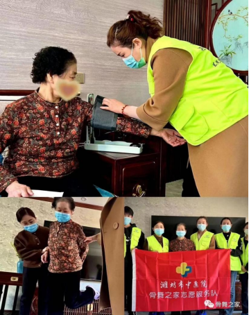 延续健康管理服务,打造群众健康的“守护网”。针对特殊患者,开展“五为”文明实践志愿服务活动, 将 “优质、专业、便捷”的健康照护延伸到居民家庭,主要针对于有特殊情况需要帮助的群众。志愿服务队的医护人员利用休息时间,志愿访视服务。深入群众家中,给予换药、拆线、血糖血压监测、康复指导以及来院复诊时提供轮椅平车、固定支具、协助挂号等服务,让群众真正的感受到“以人为中心”的温暖服务。