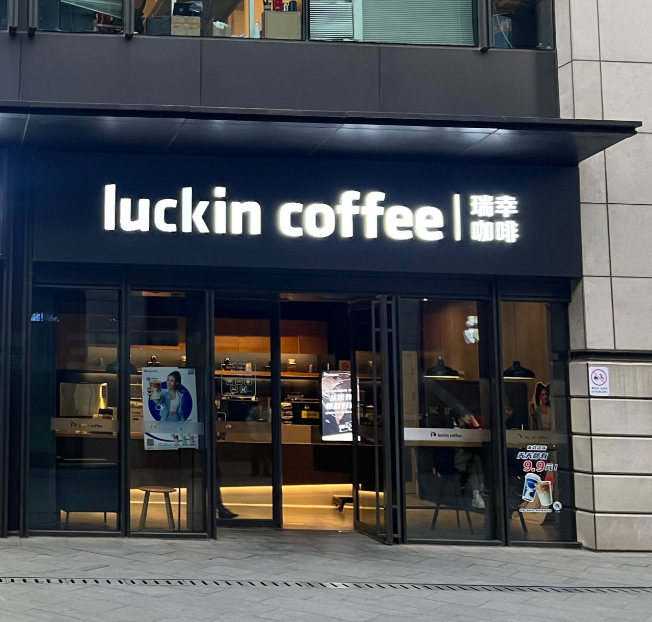瑞幸咖啡一门店外立面。