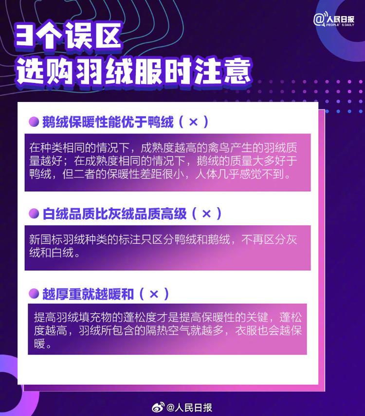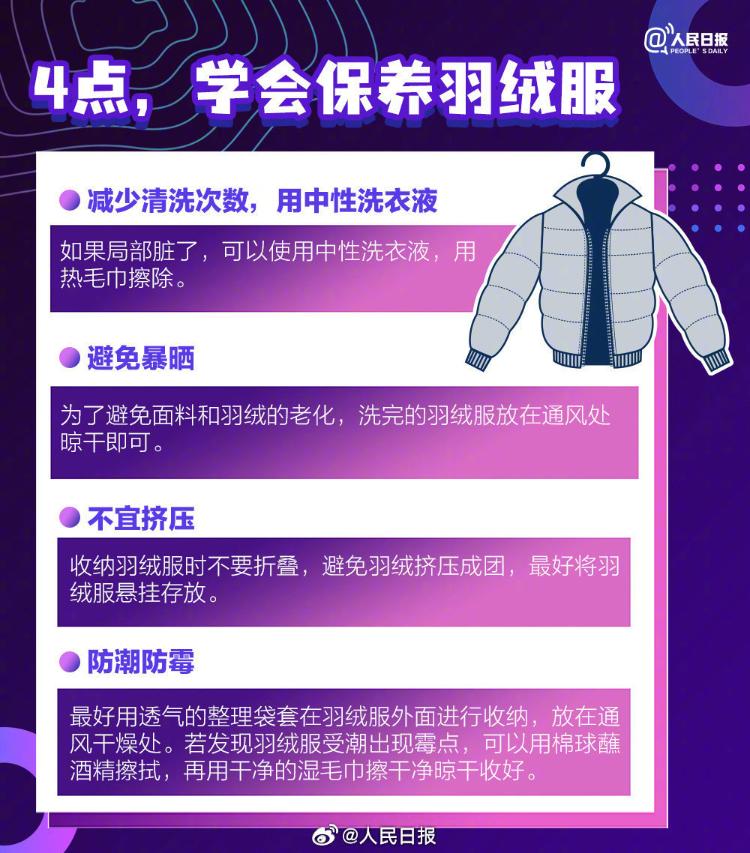 降温!这份羽绒服选购指南请查收 人民日报微博 2024-11-03 2735 今天开始,新一股强冷空气将影响我国中东部大部地区,局地降温达12℃。天气转凉,又快到了穿羽绒服的季节。怎样保养羽绒服?选购羽绒服要避免哪些误区?5步教你挑选羽绒服,这份羽绒服选购指南请查收。 (人民日报微博) 责任编辑:崔可腾