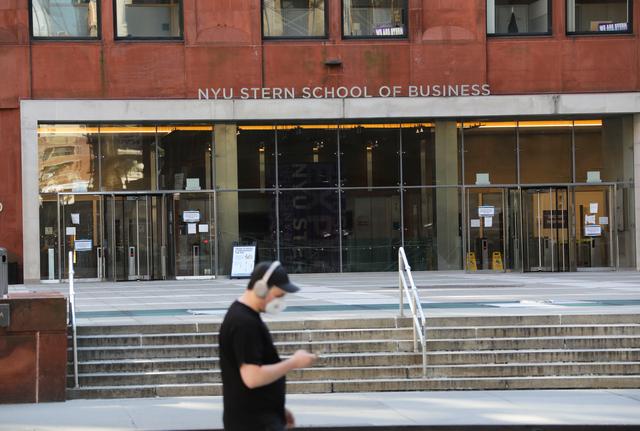 2020年7月14日,一名男子从美国纽约大学的教学楼前走过。