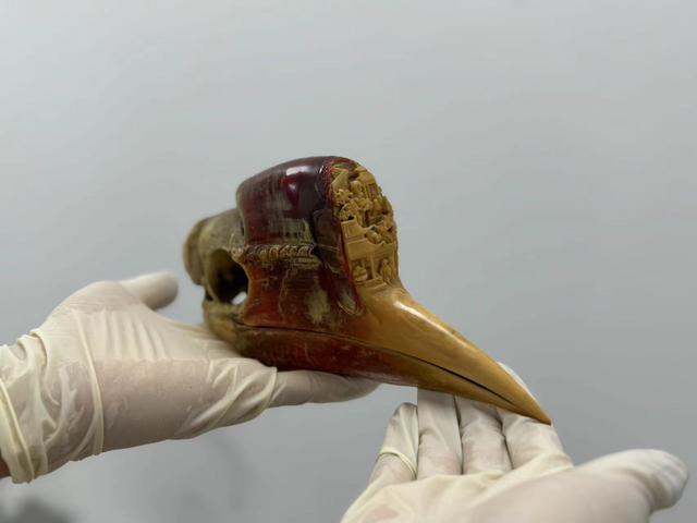 首都机场海关查获的盔犀鸟头骨。拍摄者:徐宇彤