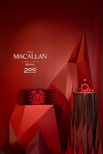 入口处6米高带有“自然锋芒”的红色山峰装置,重磅展陈了麦卡伦明日经典•200周年纪念款(TIME: SPACE Mastery)。这款威士忌精心甄选来自14种不同出众品质的橡木桶陈年酒液,塑造出层次丰富,风味醇厚的威士忌佳作,充分展现麦卡伦的精湛制酒技艺,向历代威士忌制酒大师致敬。酒液被盛装在集聚先锋技艺与古老匠艺的定制环形酒樽中,寓意生命的循环往复,以及从过去到未来的时光旅程,以此来礼赞品牌的百年传承与卓越匠心。