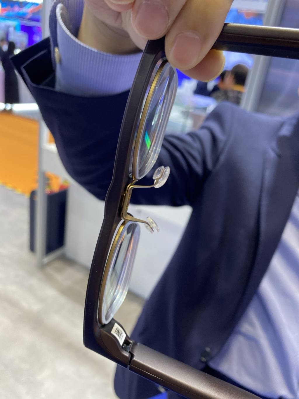 说它普通,是因为其外观与平时佩戴的近视眼镜并无不同。肖特先进光学事业部亚太区销售总监吴敏向记者介绍,这确实就是他平时佩戴的眼镜,镜片度数是400度。只不过,近视镜片与AR眼镜焊接在了一起,外形却不像头盔状的AR眼镜“笨重累赘”,所以人们很难发觉隐藏在这幅普通眼镜背后的“神奇”之处。