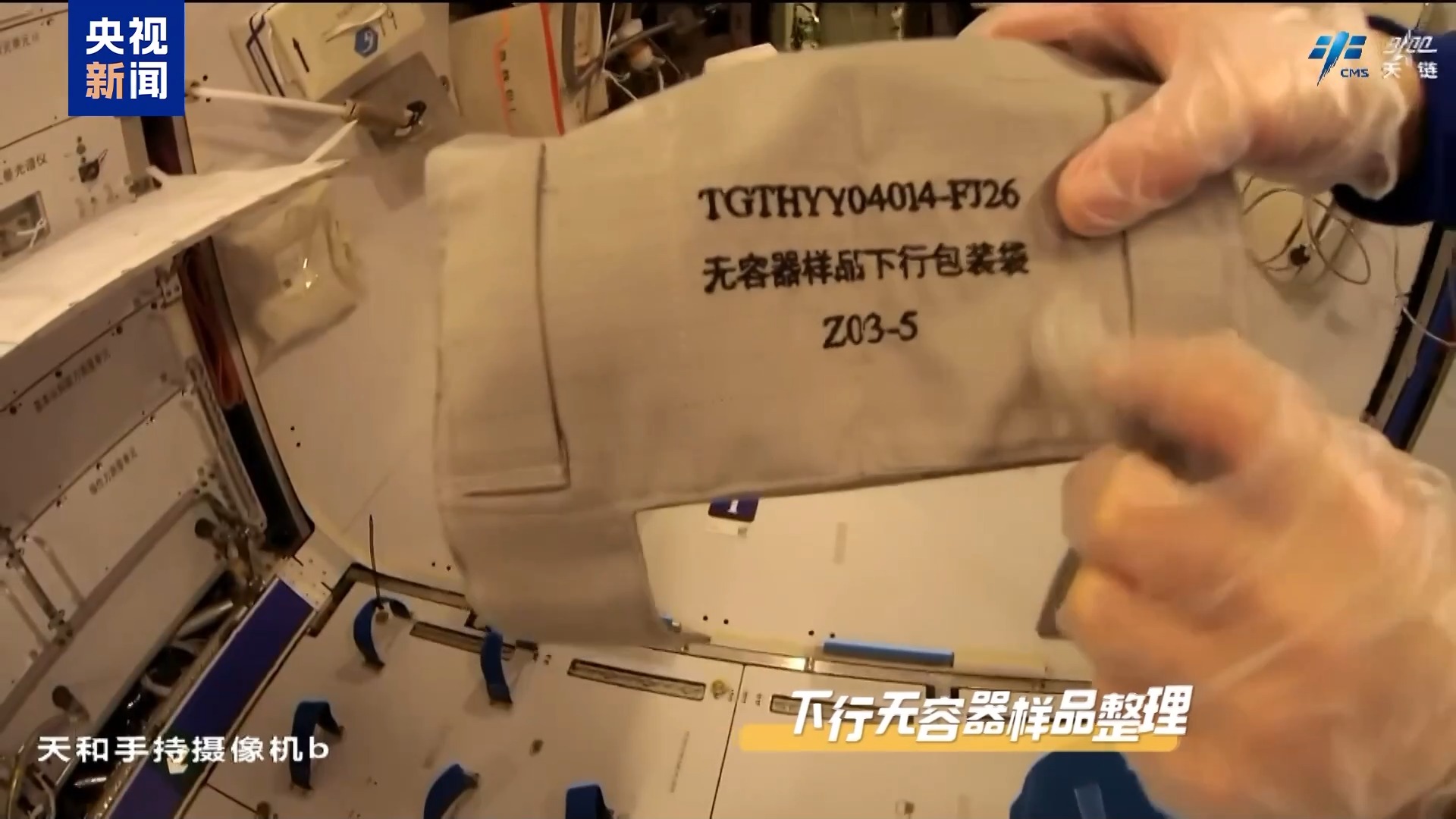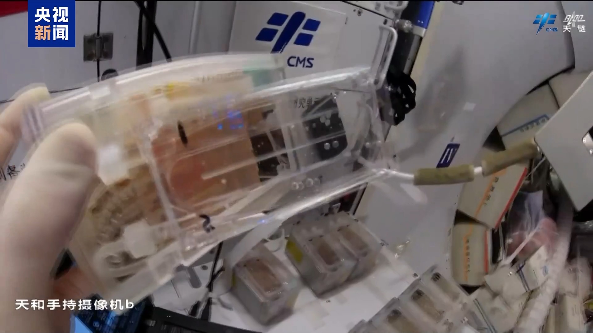 神十九乘组正在操作的模块就是细胞实验单元,一个个小方盒内集成了不同的细胞培养样本和试剂,支持在微重力环境下开展细胞生长、分化和功能的影响研究。目前,我国已在轨实施了多个航天医学细胞学实验项目,为航天员的身体健康防护提供了重要的研究平台。同时,两个乘组共同开展了无容器柜实验腔体样品清理、轴心机构电极维护,以及高温材料科学实验柜、流体物理实验柜的样品更换等工作。