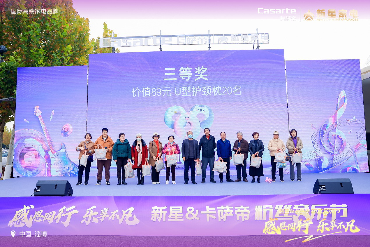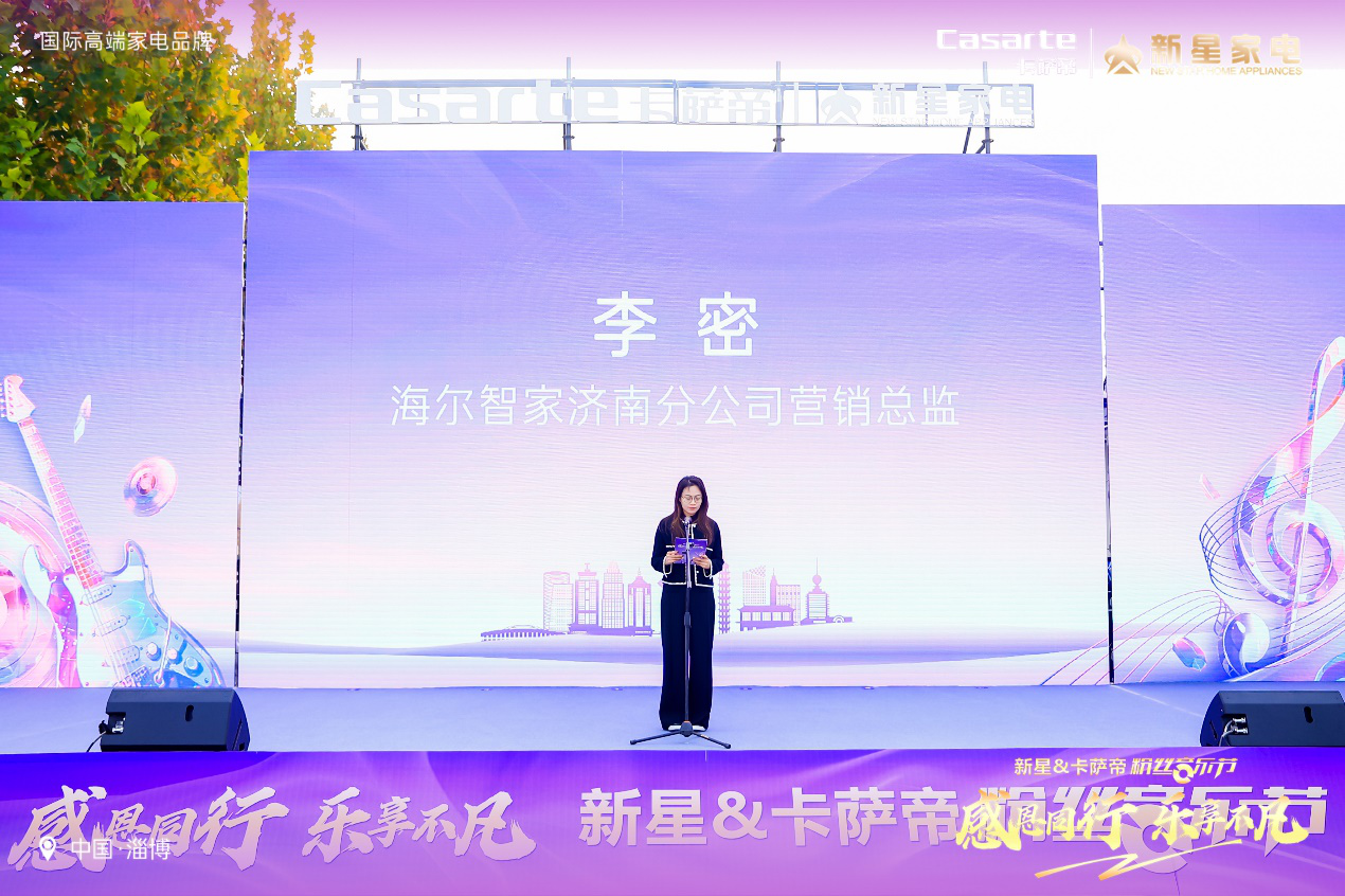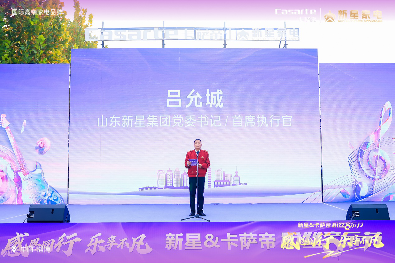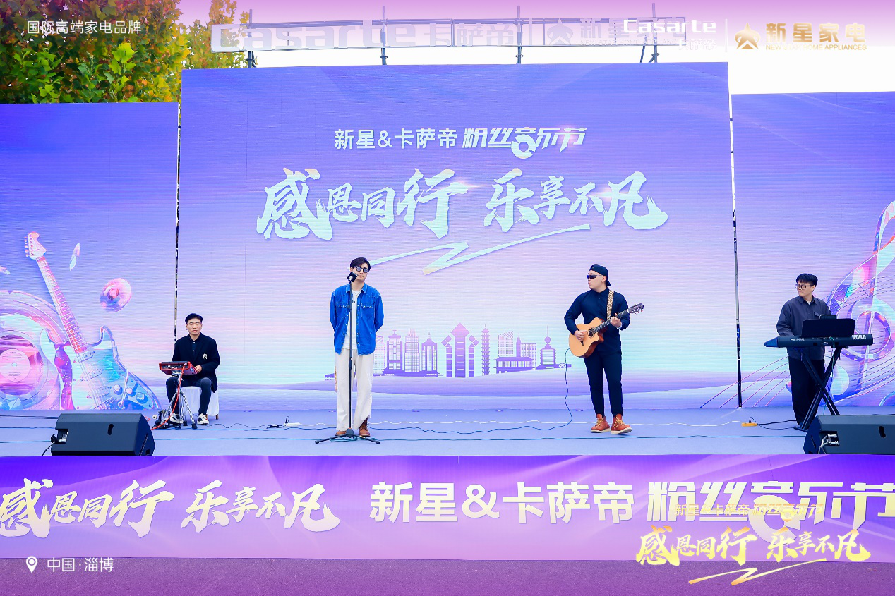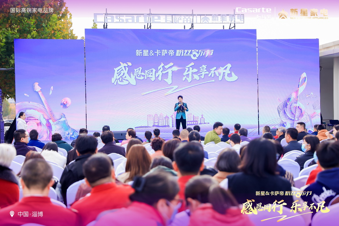 晨光初照,乐音悠扬,感恩相伴,智享生活。2024年11月9日上午,在淄博市商务局支持和见证中,新星&卡萨帝粉丝音乐节在淄博会展中心成功举办。此次音乐节不仅是科技与艺术的璀璨交汇,更是一次音乐盛宴与品质生活的和谐共鸣,彰显了新星集团与卡萨帝对品质生活的不懈追求和对用户的深切关怀。