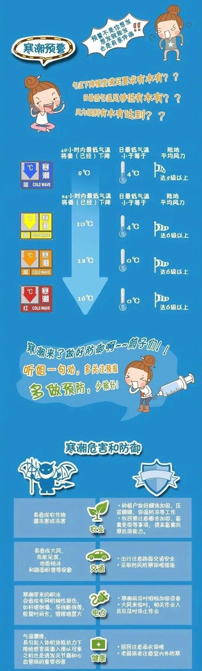 山东发布寒潮蓝色预警!寒潮天气该如何防御?一起读图学习吧