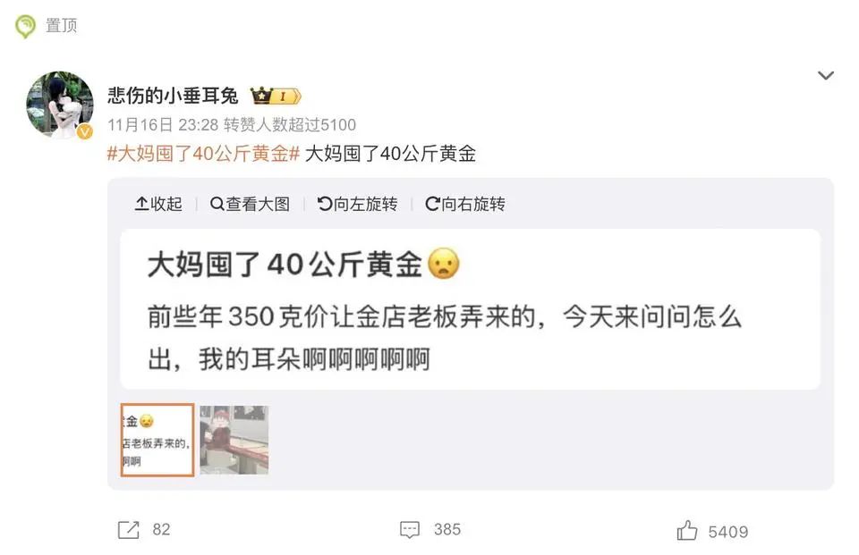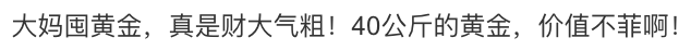 11月16日,有微博网友晒出,有一位“大妈”囤了40公斤黄金。